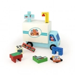 Set vsebuje leseni selitveni tovornjak in 19 kosov pohištvenih kock, idealno za samostojno ali skupno igro z družino.