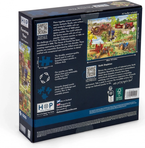Sestavljanka Kmetovo leto blagovne znamke House of Puzzles ponuja neponovljivo doživetje s svojimi edinstveno oblikovanimi koščki. Sestavite čudovito sliko kmetovega leta, ki vas bo zabavala dolge ure.