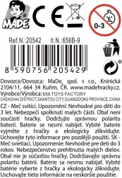 Odkrijte zabavo s tem izjemnim otroškim mečem, ki je idealen za male viteze ali superjunake. Izdelan je iz kakovostne plastike in je enostaven za oprijem za otroke, stare od 3 let. Zahvaljujoč svetlobnim in zvočnim učinkom ponuja realistične možnosti igre. Meč deluje na 3 baterije AAA, kar zagotavlja njegovo dolgotrajno delovanje.
