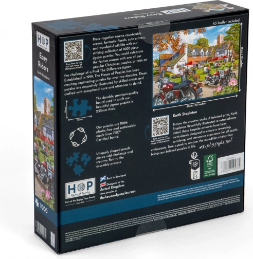 Dokončana sestavljanka meri pribl. 69 x 48 cm, kar nudi precejšnjo površino za podrobnosti, ki so v tej kategoriji sestavljank priljubljene. Sestavljanka je idealna za sprostitev, zabavo in druženje z družino ali prijatelji.