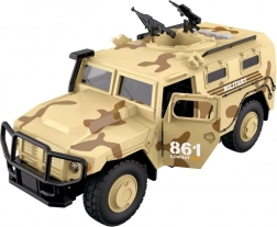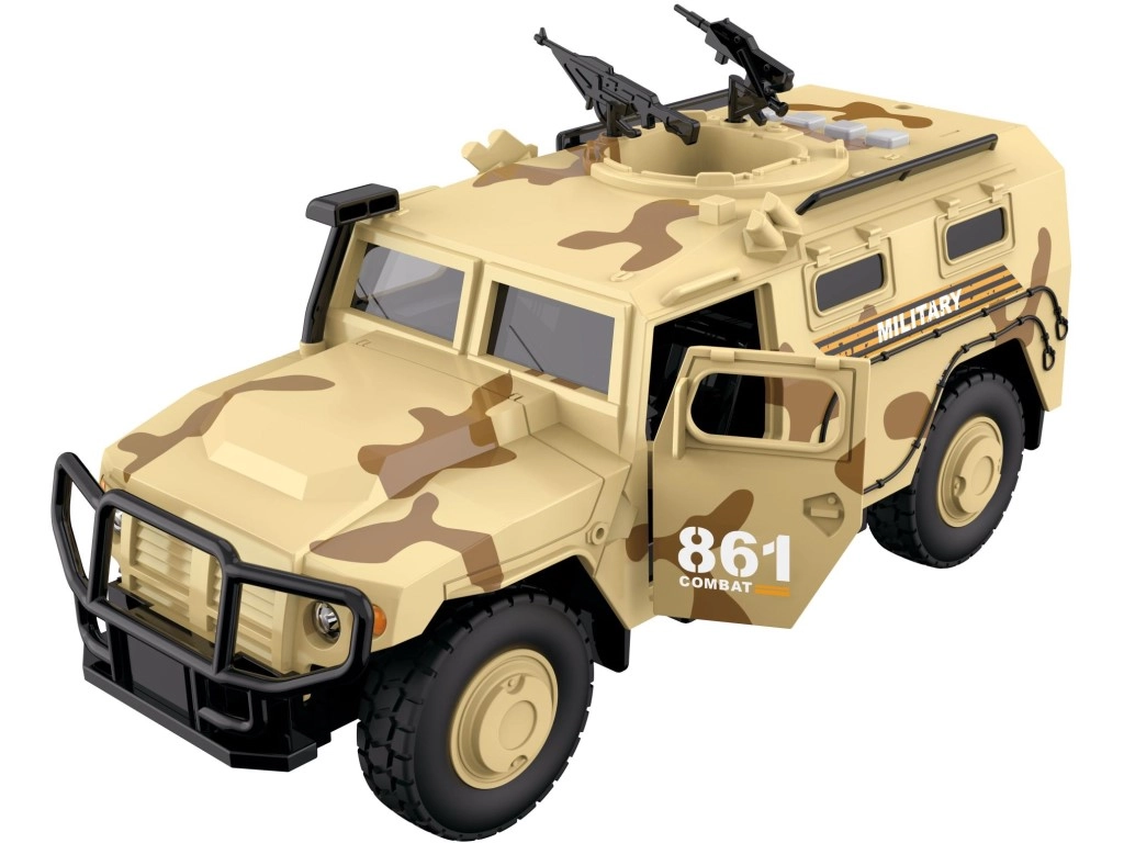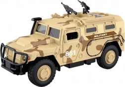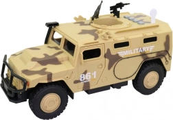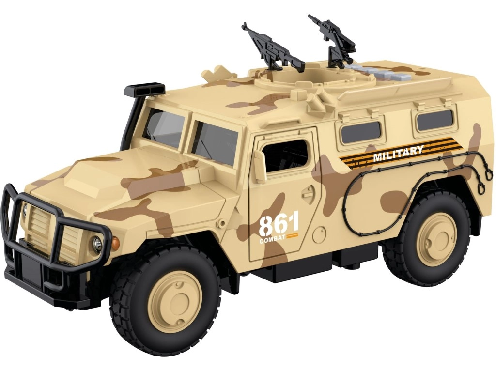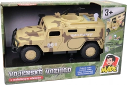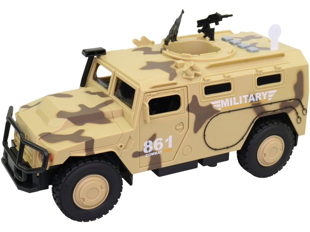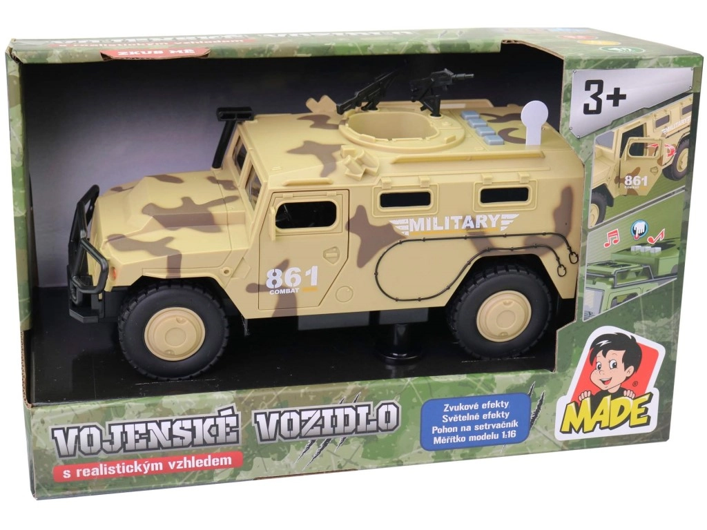 Pripravite se ne le na domišljijska, temveč tudi na akcijska doživetja! Ta baterijski vojaški avto bo navdušil vsakega malega vojaka, ki hrepeni po pristni izkušnji. Zahvaljujoč funkciji vztrajnika se avto gladko premika, realistične luči in zvoki pa poskrbijo, da se bodo otroci počutili kot na pravi misiji.