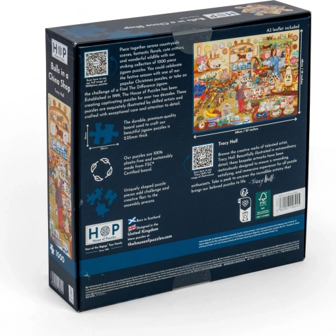 Uživajte v zabavi in sprostitvi s sestavljanko Biki v trgovini s porcelanom, ki je priljubljena izbira za ljubitelje sestavljank. Sestavljanje iz 1000 kosov, ki imajo vsak svojo edinstveno obliko, prinaša nepozabno izkušnjo. Sestavljanka vključuje: