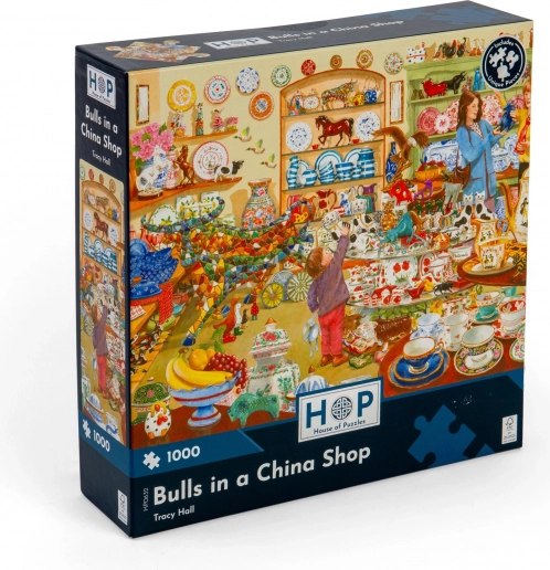 Sestavljanka Biki v trgovini s porcelanom iz House of Puzzles ponuja unikatne in nepravilne oblike kosov, ki povečujejo zanimivost in izziv pri sestavljanju.