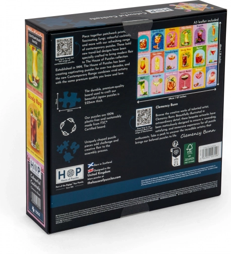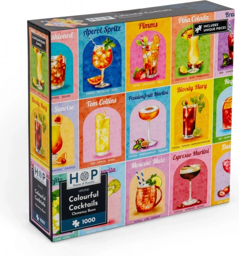 Uživajte v zabavni izkušnji sestavljanja s puzzli Barviti koktajli znamke House of Puzzles. Edinstvene oblike koščkov zagotavljajo napeto sestavljanje.