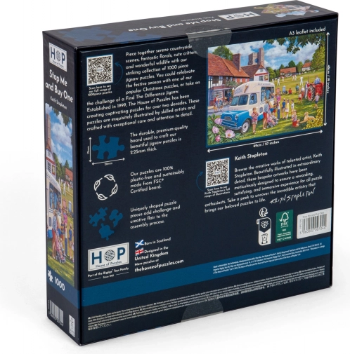Odkrijte radost sestavljanja s sestavljanko Sladoledarski tovornjak, ki vsebuje 1000 koščkov različnih, nepravilnih oblik. Sestavljanke priznane družbe House of Puzzles slovijo po svojih edinstvenih dizajnih, ki prinašajo zabavne izzive in nenehno napetost pričakovanja, kaj sledi. Ta sestavljanka povzdigne sestavljanje na novo raven ustvarjalnosti: