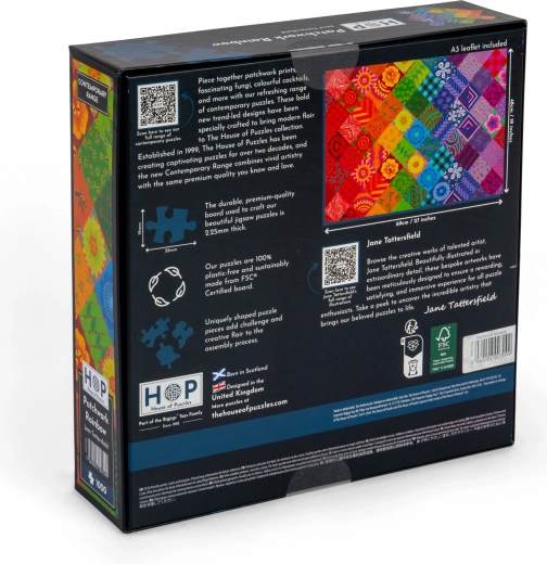 Sestavljanka Patchwork mavrica znamke House of Puzzles ponuja edinstveno izkušnjo sestavljanja zahvaljujoč svojim edinstvenim in nepravilnim oblikam koščkov. Vsak košček je izviren in bo odlično dopolnil vašo zbirko.
