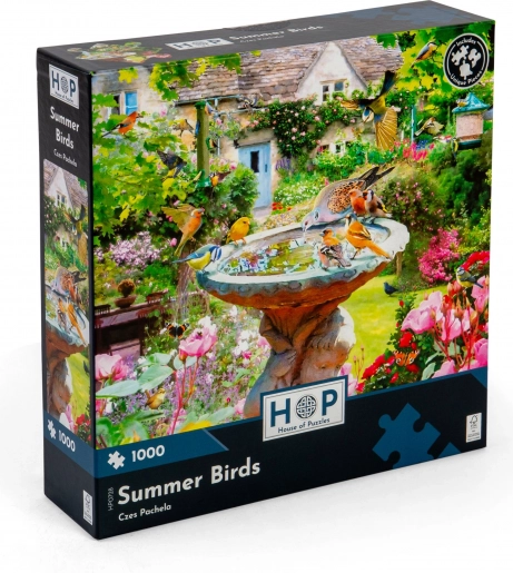 Sestavljanka Poletne ptice 1000 koščkov znamke House of Puzzles. Edinstvene oblike koščkov prinašajo nov izziv in zabavo.