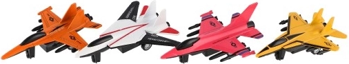 Predstavljamo vam zbirko barvitih lovskih letal, ki bodo popestrile vsako otroško igro. Ta serija vključuje štiri različne barve, vsako letalo pa meri 11 cm. Zahvaljujoč mehanizmu povleci nazaj lahko otroci letijo s temi igračami kamorkoli jih njihova domišljija ponese.