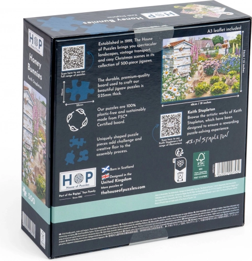 Sestavljanka Sladki zajčki znamke House of Puzzles ponuja privlačen izziv zahvaljujoč svojim edinstvenim in nepravilnim oblikam kosov. Zagotovo boste uživali v vsakem trenutku sestavljanja tega sladkega prizora.