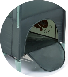 Posteljica je namenjena novorojenčkom in otrokom s težo do 15 kg. Ima privlačen živalski motiv in preklopno stranico, ki ponuja dve ravni uporabe. Na eni strani je žep za dodatke ter zadrga na vhodu za enostaven dostop do otroka.