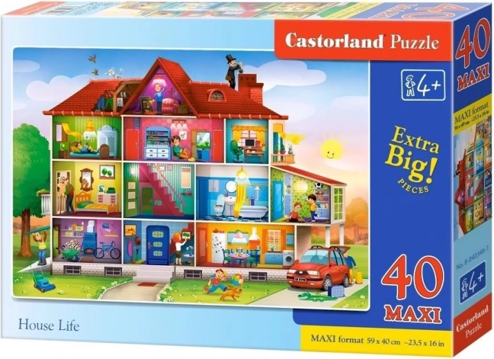 CASTORLAND Sestavljanka Življenje v hiši MAXI je idealna izbira za otroke, ki imajo radi sestavljanke. Opremljena je z velikimi koščki, ki omogočajo enostavno sestavljanje na tleh.