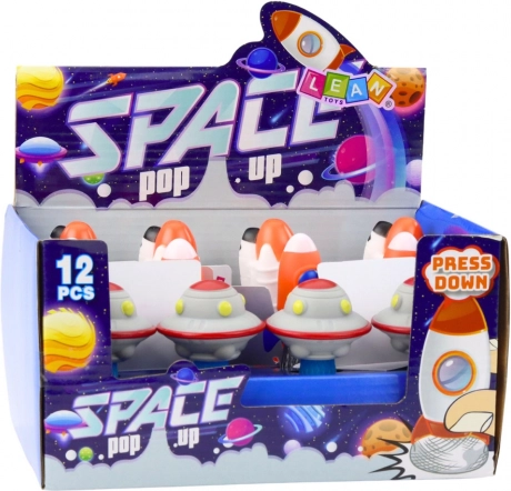V ponudbi so različno navdahnjeni modeli – rakete, vesoljske ladje in leteči krožniki – ki otroke popeljejo v svet vesoljskih pustolovščin. Igrača je izdelana iz varne plastike in prožne gume, idealno se prilega otroški roki.