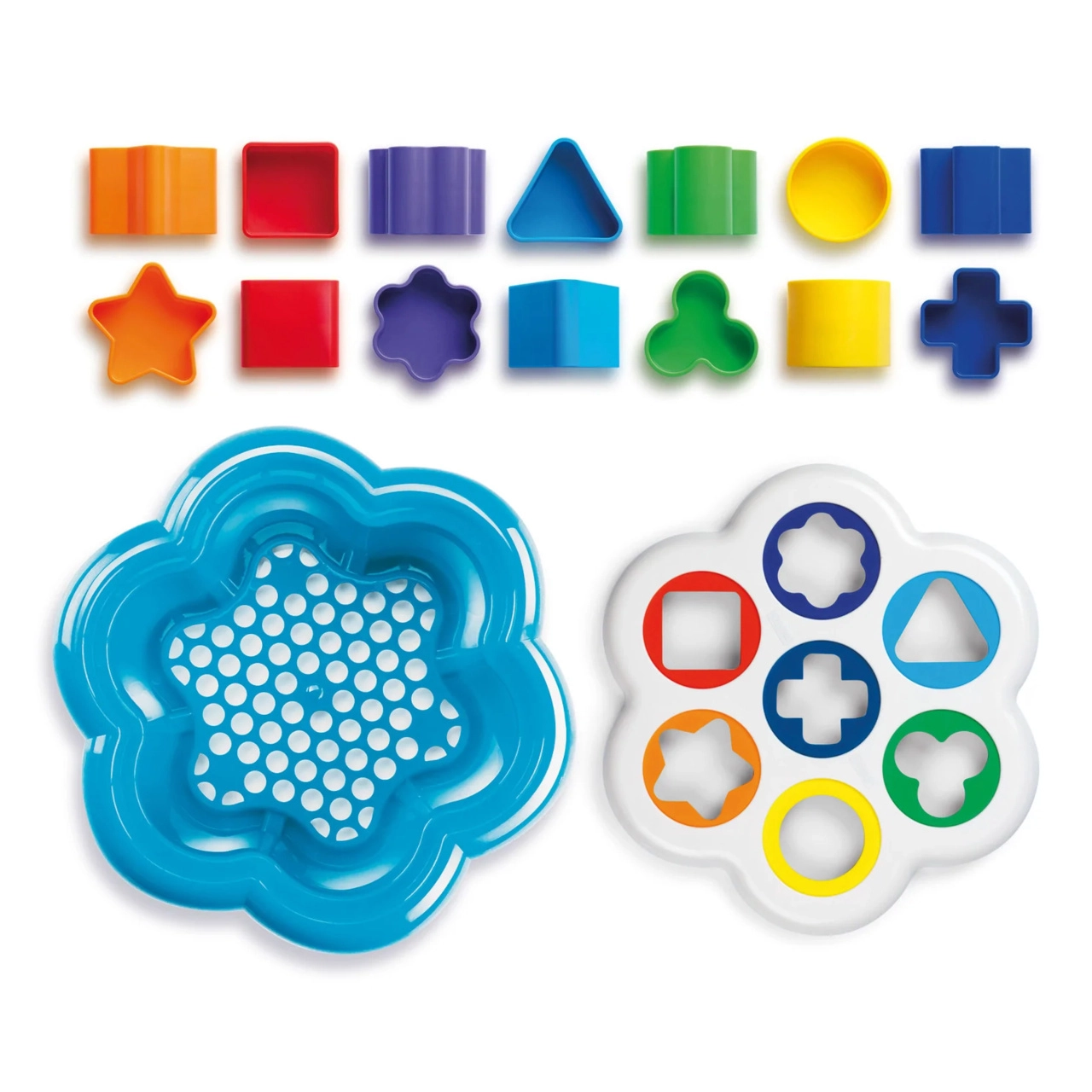 Set vsebuje 14 barvnih koščkov v 7 različnih oblikah ter praktično rožno škatlico s pokrovom, v katero po igri vse preprosto pospravite. Vzdržljiva in lahko pralna izvedba iz varnega plastika zagotavlja dolgo življenjsko dobo igrače.