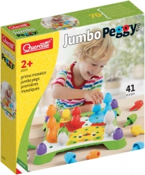 Mozaika Jumbo Peggy Evo je odlična uvodna igrača v svet mozaikov za otroke od 2 let. Ekstra veliki čepi dobro ležijo v otroških rokah, varno se vstavljajo v perforirane kartice in zaradi zložljive oblike spodbujajo tudi gradnjo stolpov. Igra razvija fino motoriko, potrpežljivost in ustvarjalnost, hkrati pa podpira prepoznavanje barv in oblik.