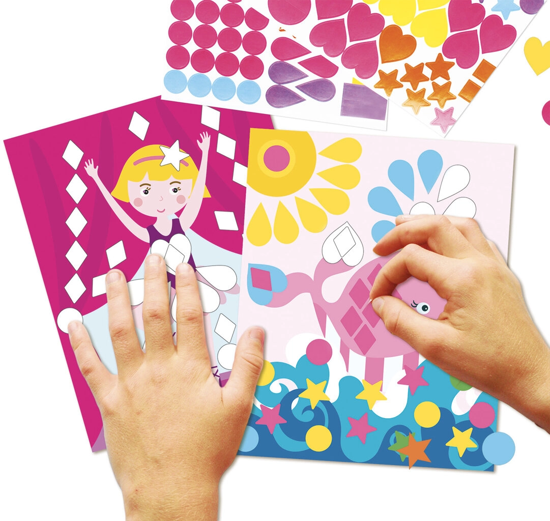 Privoščite svojim otrokom veselje v ustvarjanju s tem kompletom nalepk, namenjenim posebej malim ljubiteljicam pravljičnih junakov in živalic.