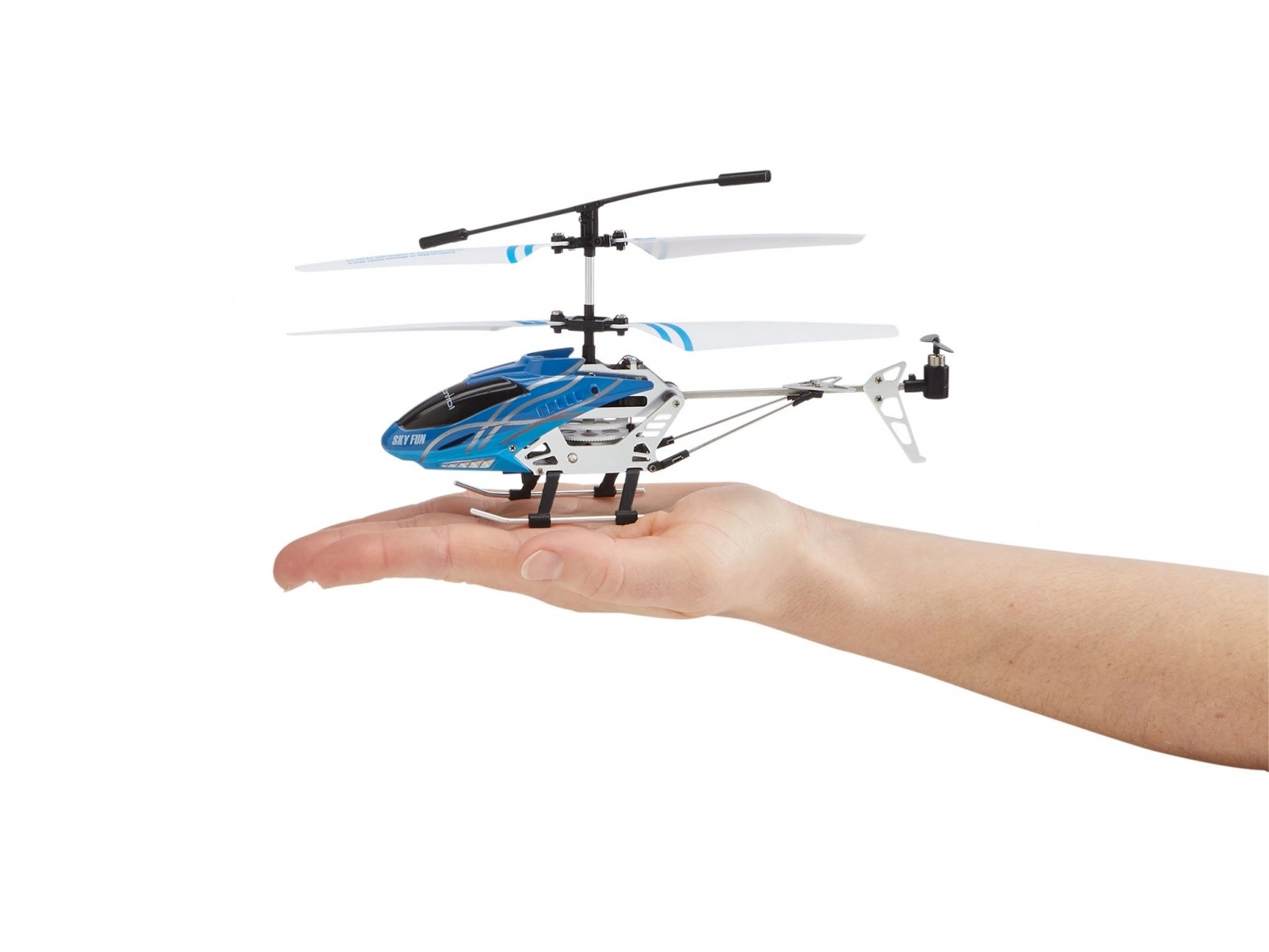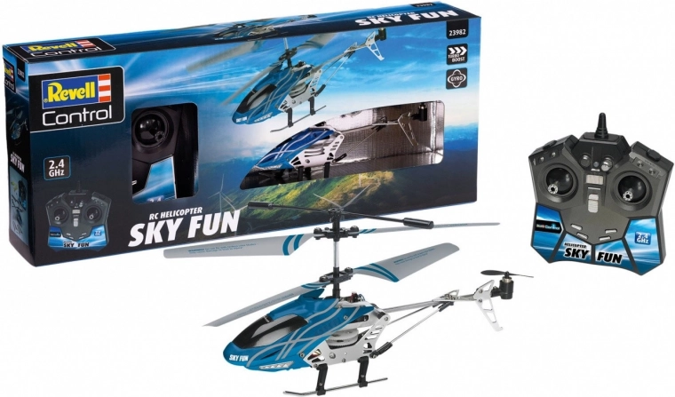 Zabavni helikopter Sky Fun je zaradi svojih kompaktnih mer (185 mm dolžina, 40 mm širina, 100 mm višina in premer rotorjev 195 mm) izjemno okreten in odlično primeren za letenje v notranjih prostorih. Dizajn je prijazen in privlačen, zato bo navdušil tako otroke kot odrasle.