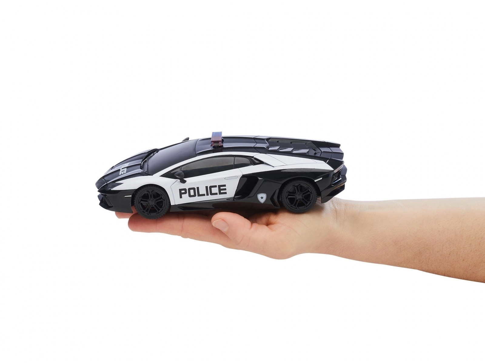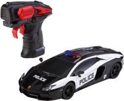 Daljinsko vodeni avto Revell Control Lamborghini Aventador Police je popolna izbira za ljubitelje adrenalinskih zasledovanj. Z dolžino 200 mm, širino 95 mm in višino 52 mm ta model v merilu 1:24 ponuja impresivne podrobnosti in realističen videz. Pozornost pritegne njegov policijski dizajn. Daljinsko vodeni avto je opremljen z upravljalnikom 2,4 GHz, ki omogoča gladko krmiljenje in doseg do 30 metrov. Z zmogljivim električnim motorjem lahko doseže hitrost do 10 km/h, kar omogoča doživeti razburljive avtomobilske zasledovalne vožnje. Oprijemljive pnevmatike zagotavljajo optimalen oprijem na različnih podlagah, sprednja LED osvetlitev pa ustvari napeto vzdušje tudi v temi.