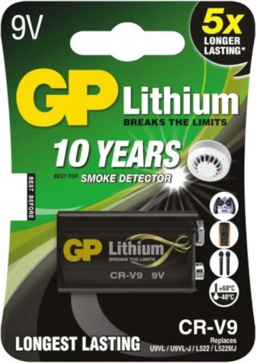 Baterije GP Lithium 9V so idealna izbira za naprave, ki zahtevajo zanesljivo in dolgotrajno delovanje. Tipične so domače naprave, kot so javljalniki dima, ki z njimi ostanejo aktivni do deset let, če se uporabljajo skupaj z rezervno baterijo. To je dvakrat daljši čas v primerjavi z običajnimi alkalnimi baterijami.