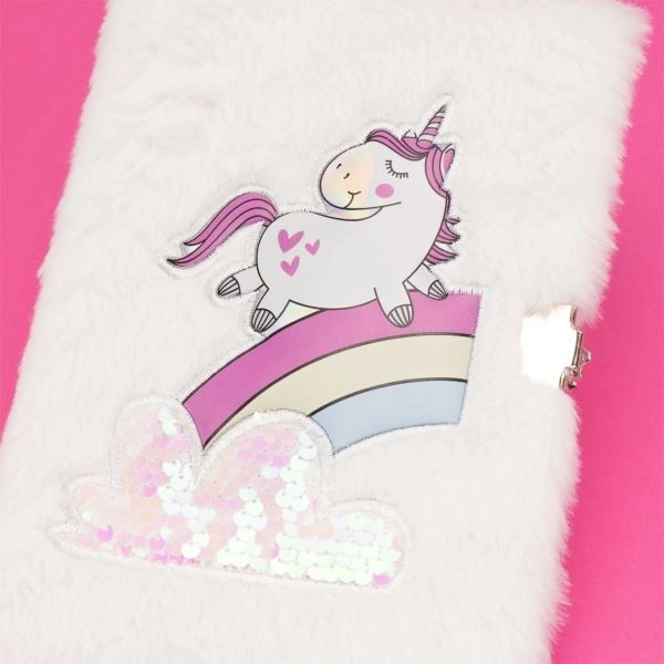 Spominska knjižica ima izjemno mehak puhast ovitek, okrašen z opalescentnim samorogom in bisernimi reverzibilnimi bleščicami. Ta edinstven videz je idealen za vse, ki imajo radi čarobne in barvite dodatke.
