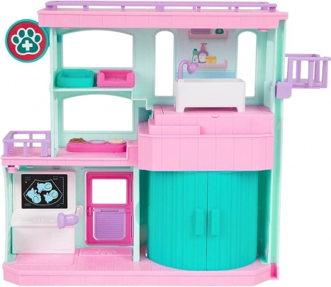 Kaj vsebuje ta set? V tej kliniki najdete vse, kar potrebujete za nego mladičkov: posodice, blazinice, rentgen, kad, posteljice in celo dvigalo za prevoz malih živalic! Vsak kotiček klinike je poln presenečenj, ki poskrbijo, da bo vaša skrb za kužke edinstvena.