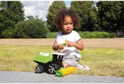 Kombajn Truxx 2 v škatli je izdelan iz visokokakovostne plastike in ima zelo trdno konstrukcijo. Del kompleta sta odstranljiva kabina s figurico in gumijasta kolesa za tihi tek.