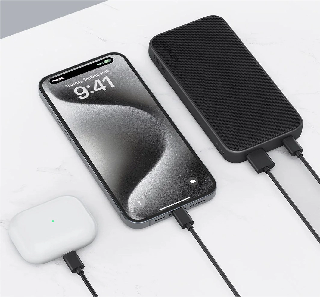Hitro polnjenje prek USB-C: S powerbanko Aukey Spark Go lahko hitro polnite svoje naprave zahvaljujoč tehnologiji USB-C in vhodu 5 V/3 A, kar je idealno za iPhone, Android ali druge naprave. Polnjenje powerbanke je hitrejše kot kdaj koli prej.
