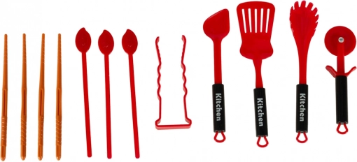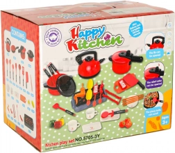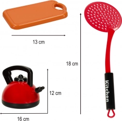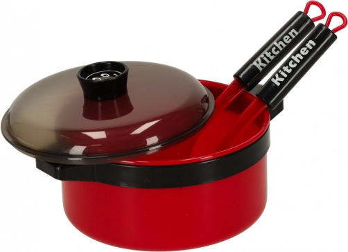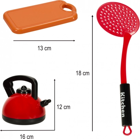 Vključuje igrače, kot so žar, ponev, čajnik in druge uporabne pripomočke, ki jih otroci potrebujejo za igro kuharjev.
