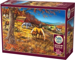 Sestavljanka COBBLE HILL Srečanje na pobočju 2000 koščkov ponuja višjo zahtevnost zaradi nenavadnih oblik koščkov, ki ne sledijo klasični mreži. Uživajte v edinstveni sestavljanki s čudovitim motivom!