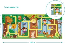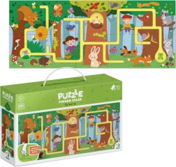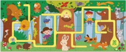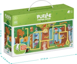 Ta odlična sestavljanka prinaša igrivo raziskovanje gozda, kjer lahko otroci s prstom sledijo utorom in premagujejo ljubko pot, polno veveric, zajčkov, ježev in ptičkov. Ilustracije celotnemu procesu dodajo čarobnost, otroci pa se lahko učijo prepoznavati gozdne živali. Sestavljanka je zasnovana tako, da razvija fino motoriko, koordinacijo, pozornost in domišljijo malčkov.