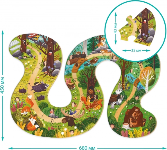 Spoznajte svet gozda s to čudovito leseno sestavljanko, ki vsebuje 16 kosov in lesene figurice živalic. Idealno za male raziskovalce in njihove prve dogodivščine v gozdu.