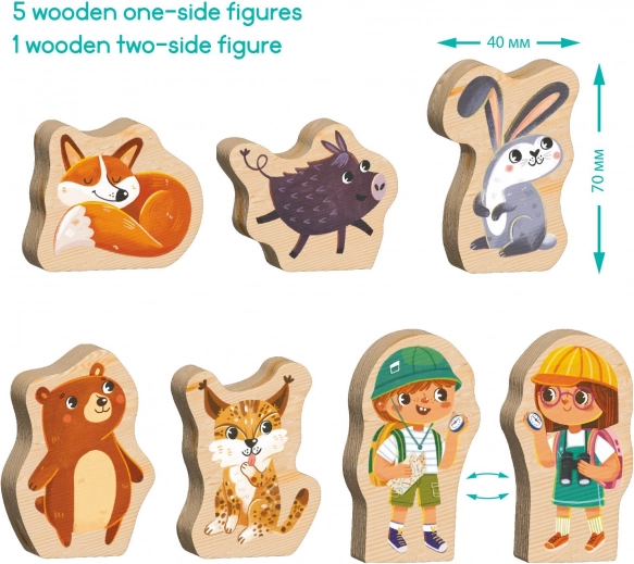 - Vsebuje lesene figurice gozdnih živali
