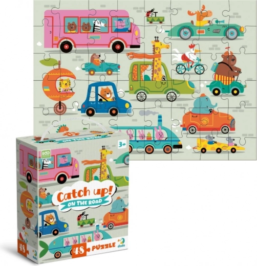 Obduti zabavo s sestavljanko Ulovi jih: Na cesti, ki vsebuje 48 kosov in ponuja 0darobno upodobitev, polno barv in domi9alije.