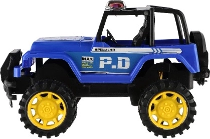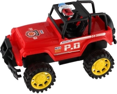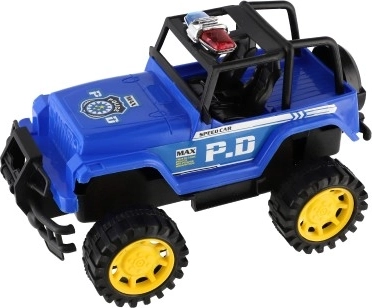 Robusten off-road dizajn z visokim podvozjem in izrazitimi kolesi daje vozilu samozavest v »terenu« otroške sobe in na vrtu. Policijski videz z izrazitimi napisi podpira igro vlog in razvija domišljijo. Zahvaljujoč vztrajniku je dovolj, da avto potisnete, in odpelje naprej brez baterij.