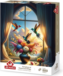 Sestavljanka Simfonija kril in cvetja s 500 kosi prinaša barvit in podroben motiv narave, ki bo poživila vaš um in krajšala dolge trenutke.