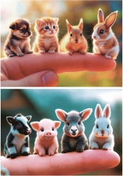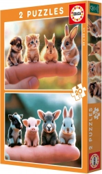 Educa puzzle Majhne živalice prinašajo zabavo in ustvarjalen izziv za najmlajše otroke. Komplet vsebuje dve sestavljanki, vsaka v velikosti 28 x 20 cm.