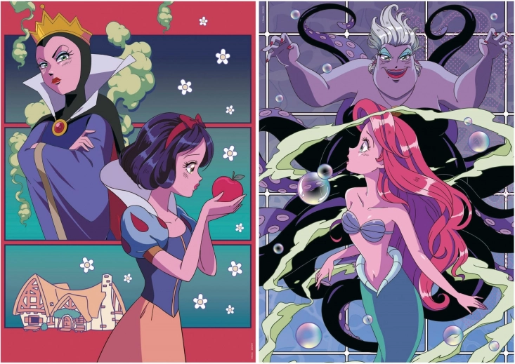 Educa Sestavljanka Disney Zlobneži in Princeske je popolna zabava za ljubitelje Disney junakov. Z dvema 500-delima sestavljanka boste uživali ure sestavljanja in občudovanja ikoničnih likov.