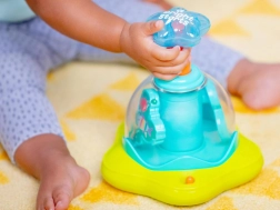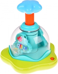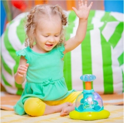 Glavna privlačnost so vrtinčaste luči, ki pritegnejo pozornost in spodbujajo otroke k aktivni igri. Kombinacija barvitih svetlobnih učinkov in dinamičnega gibanja razvija vidno-motorično koordinacijo ter spodbuja otrokove čute.