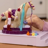 Ker ponuja veliko možnosti za igro! Punčka ima premične okončine, zato lahko izvaja različne dejavnosti. Grivo in rep konja je mogoče česati in oblikovati po lastnih željah. Zaradi številnih dodatkov je mogoče ustvarjati različne, edinstvene pričeske, da bo konj vedno videti odlično! Vrtljiva platforma olajša oblikovanje in predstavitev rezultatov. Priročen predalček za dodatke je odličen za shranjevanje pripomočkov in ohranjanje reda.