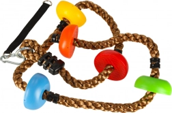 Plezalna vrv za vse vremenske pogoje: Odporna igrača, zasnovana za intenzivno celoletno uporabo. Izdelana iz odpornega materiala PE, odporna proti vlagi, soncu in zmrzali, ohranja lastnosti ne glede na vreme. Proti zdrsni diski zagotavljajo trden oprijem – tudi v deževnih dneh.