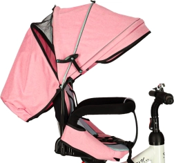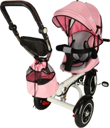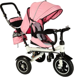 Trikolesa je opremljena z varnostnimi elementi, kot so 2-točkovni pasovi in udoben sedež z mehko prevleko.