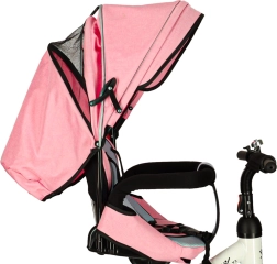 Atraktiven in moder dizajn skupaj z nastavljivim ročajem omogoča nadzor smeri vožnje starša. Strešica z prozornim okencem zagotavlja zaščito pred soncem in dežjem, obenem pa omogoča spremljanje otroka. Trikolesa je opremljena z odsevniki, vgrajeno zavoro in 2-točkovnimi varnostnimi pasovi za največjo varnost. Je prilagodljiva, kar jo naredi idealnega sopotnika od zgodnje starosti otroka do njegovih šestih let.