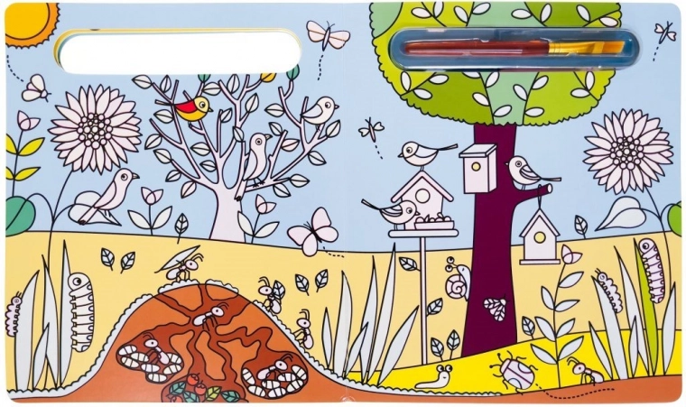 Ta knjiga s trdo lepljeno platnico je idealna izbira za male navdušence nad slikanjem. Vsebuje čudovite ilustracije vrtnih živali, ki čakajo na vašo ustvarjalnost. Posebna tehnologija omogoča, da barve po sušenju izginejo, zato lahko slikate znova in znova.
