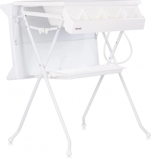 Kadička s previjalno podlogo in stojalom Aqua Friends znamke Chipolino je idealna za novorojenčke in otroke do 12 mesecev. Ta previjalna miza je hkrati tudi kadička, ko odstranite previjalno podlogo. Priložen je zložljiv stojalo za enostavno shranjevanje in predalček za dodatke.