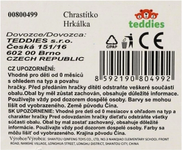 Zaradi svoje lahkosti in ergonomskega dizajna jo majhne otroške roke zlahka primejo. Nežno ropotanje pritegne pozornost otrok, spodbuja senzorični razvoj in pomaga v obdobju grizenja.