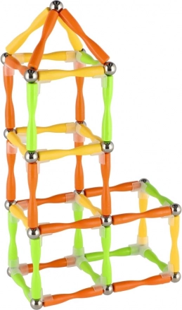 Ta magnetna sestavljanka ponuja pestro paleto možnosti za kreativno igro. Deli v živih barvah se zahvaljujoč močnim magnetom in kovinskim povezovalnim kroglicam gladko spajajo, zato lahko otroci gradijo stabilne prostorske modele in preproste geometrijske oblike.