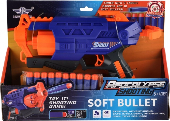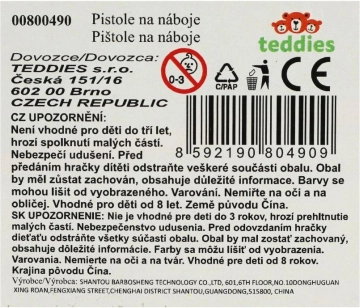 V paketu je 10 penastih nabojev in pištola dolžine 28 cm, ki jo je enostavno držati tudi v majhnih rokah.