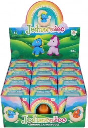 - Magični učinek izvalitve: jajček po namakanju poči in razkrije samoroga.