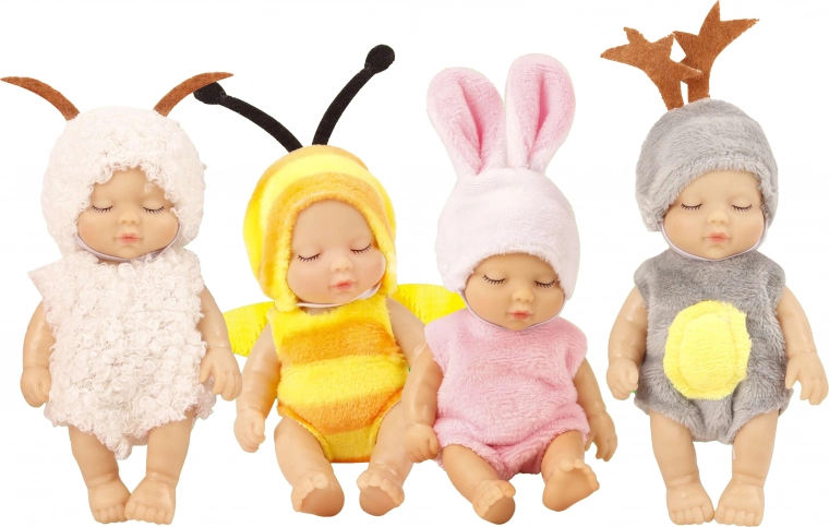 Razširite svojo zbirko s tem čarobnim dojenčkom, ki je visok le 12 cm. Vsak kos je skrbno izdelan z veliko pozornosti do detajlov, vključno z barvitimi oblačili z različnimi živalskimi motivi. Dojenček je idealen za igro ali kot dekorativni element v otroški sobi.