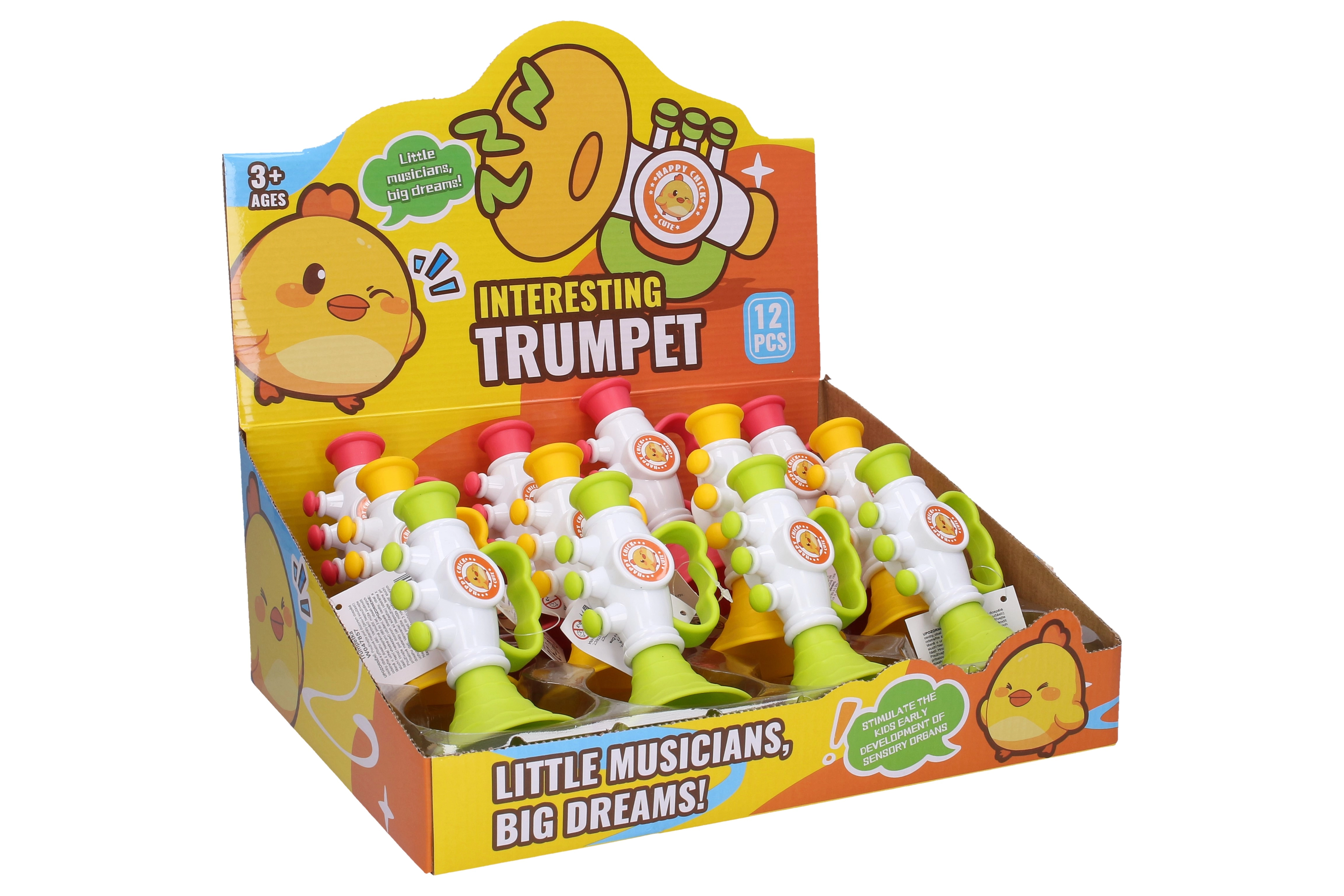 Trobentica v obliki piščančka je popolna igrača za vsakega otroka. Zaradi svoje velikosti 16 cm in barvnih različic je odličen spremljevalec za trenutke, polne zabave.