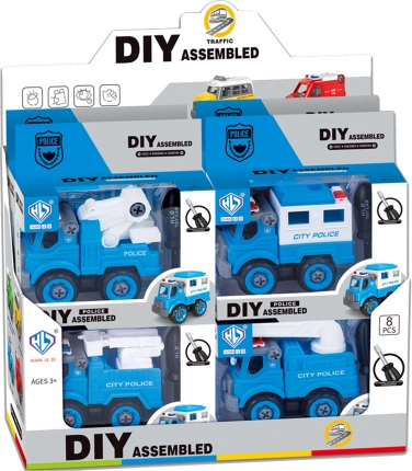 Ta policijski avtomobilček je zasnovan tako, da otrokom nudi ure zabave. Enostavno ga je mogoče sestaviti zahvaljujoč vijačnemu mehanizmu, kar je odlična priložnost za razvijanje fine motorike in logičnega razmišljanja. Na voljo v 4 različnih različicah, vsak avtomobilček ponuja edinstven dizajn: